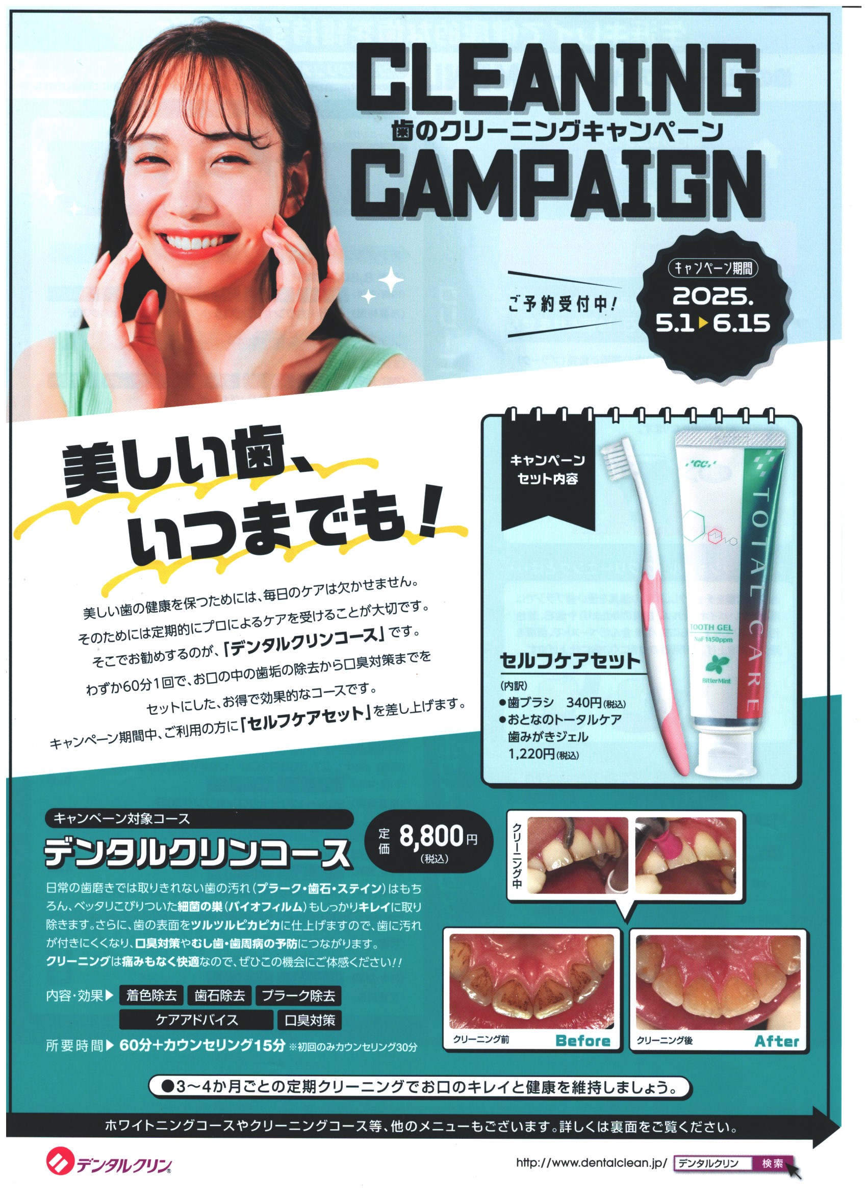 歯のクリーニングキャンペーン 5月1日~6月15日(ご予約受付中)